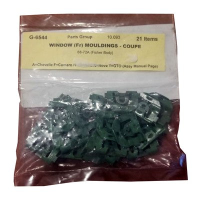 Windshield Reveal Molding Clip Set; Front; Upper & Sides Only; 32-Pieces; 68-72 Chevelle; El Camino; Cutlass; Skylark; Gto; Lemans; 68-70 Tempest; 70-72 Monte Carlo; 69-72 Grand Prix; Except Convertible