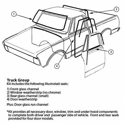 Weatherstrip Kit; 64-66 Pick-Up; Without Chrome Reveal Moldings
