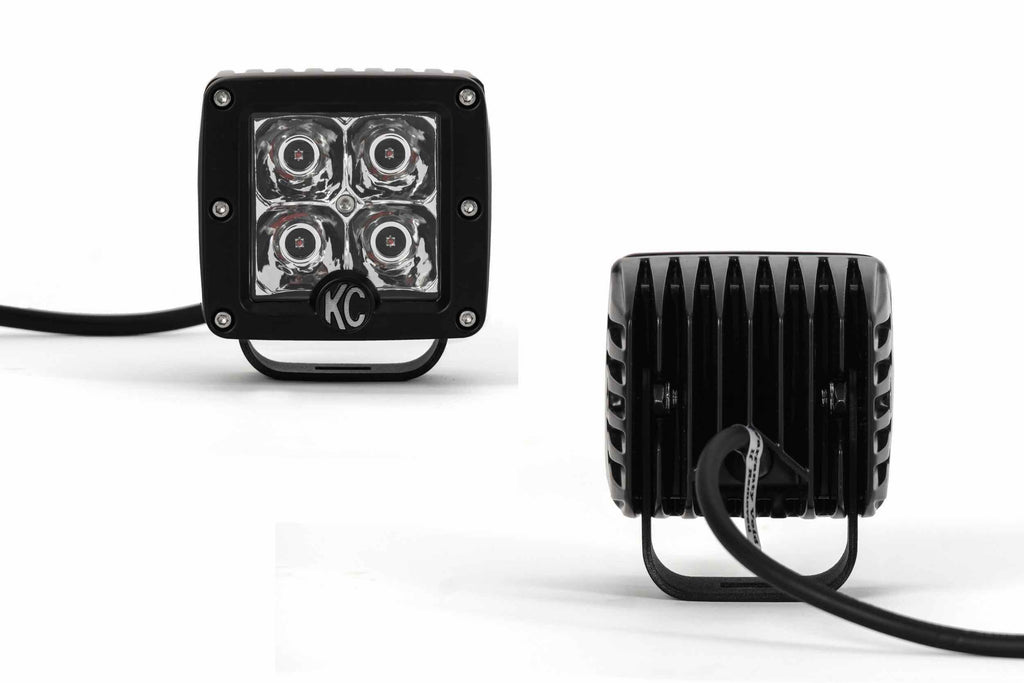 KC HiLiTES 3" C3 LED feature bright Osram LEDs in 8deg Spot or 90deg Flood beam patterns, inside an impact resistant die-cast aluminum design and durable Lexan lens. System includes: (2) C3 LED lights with brackets and complete wiring harness. PERFORMANCE OUTPUT AND CLARITY: The C-Series LED C3 lights use a forward facing Osram LED design delivering a stout 1,080 Lumens of output with maximum power efficiency. They are perfect for front bumper, windshield, grille, and reverse light applications. HIGH PERFORMANCE MEETS AFFORDABILITY: C-Series LED C3 lights feature a die-cast aluminum housing, aluminum core PCBs with thermal management, and lexan lenses. What you get is a perfect balance of affordable performance with maximum efficiency, stability and reliability. SPOT OR FLOOD BEAM PATTERNS: When it comes to total road coverage, the C-Series LED C3 lights feature either spot or flood reflectors for maximum forward distance and increased peripheral illumination along road edges. Also available with Amber LEDs for greater visual contrast to tackle thick fog and mist. DESIGNED FOR DURABILITY: Off-road race tested, the C-Series LED was designed to handle the harshest environments. Featuring an IP67 rated housing with on-board Thermal Management for maximum light output and efficiency. Available Part Numbers: 3" C3 LED Pair Pack System - KC #330 (Spot Beam), 3" C3 LED Pair Pack System - KC #332 (Flood Beam), 3" C3 LED Pair Pack System - KC #315 (Spot Beam) (Amber).