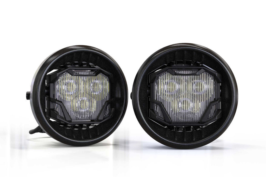 SAE Compliant Fog Lights: The Morimoto 4Banger NCS SAE Wide Beam out-performs the competition while complying with the latest SAE F regulations for a street legal fog light. The 4Banger HXB Wide Beam sets a new industry benchmark for intensity. But what's better than producing the best and brightest beam patterns that are safe for use on public roads as a fog light? The best fog-light specific mounting brackets for your Ford truck, of course. Engineered Solution: Thanks to the smaller than usual footprint of the 4Banger, we now have a powerful fog light upgrade that fits properly and looks right. Other adapter kits for more traditionally-sized LED pods stick out like a sore thumb. Not here. Morimoto engineers spent hundreds of hours hands-on in the garage during development of the 4Banger brackets alone. Repeated rounds of design, prototyping, and test fitting have spawned the most refined set of fog light brackets that a F-150 owner could ask for. Easy Setup: Everything is designed to bolt-on and plug-n-play. No modifications are required to your vehicle or its wiring to install the 4Banger off-road lights in your fogs. Each kit includes all of the necessary hardware and high-quality wiring adapters to connect with your factory fog light harness. Note, your vehicle must have stock fog lights. Fully Adjustable: These things are powerful, and while their wide beam pattern is perfect for use as a fog light, power is nothing without control. All brackets have +/- 6 degrees of vertical adjustability so that you can dial in the aim and ensure every ounce of intensity ends up on the road ahead, not in the eyes of oncoming traffic. Air Cooled: As if the style, the fitment, the adjustability aren't enough " we have incorporated duct work into each bracket to actively cool the LED pods. This improves lumen maintenance by eliminating heat-soak, which is common in other LED Pod fog light kits that have no ventilation for the heat sink. All Weather: The white-output version is ideal for all-around visibility. For those who desire optimal output in rain, snow, or fog " the Yellow-output version will slay in sour weather. For HXB Spot and Combo models, Morimoto has opted for Phosphor-Converted Yellow LEDs that produce yellow light at the origin, which is the most effective way to penetrate through particles in the air without compromising output (Filtering white light through a yellow lens achieves the look, but no actual performance benefit in poor weather). HXB Wide Beam: Offers an extremely wide beam pattern backed with powerful Osram HX Boost LEDs, making these the brightest SAE-Compliant fog light pod on the market today (80% brighter than Rigid D-Series SAE Fog and photometrics verified SAE Compliant by Calcoast ITL). The 4Banger HXB Wide beam delivers the best combination of width, intensity, and control - making it the most effective on and off-road LED fog light in the world. NCS Wide Beam: Offers the same super wide beam pattern backed with LEDs from Nichia. Their superior vertical gradient control also been verified by Calcoast ITL to meet SAE F photometric standards for on-road use as a fog light, making them highly effective on the ground and glare-free for oncoming traffic. The NCS Wide beam is 14% brighter than its next closest competitor (Rigid D-Series SAE), while consuming 28% less power (15.6W vs 21.5W).