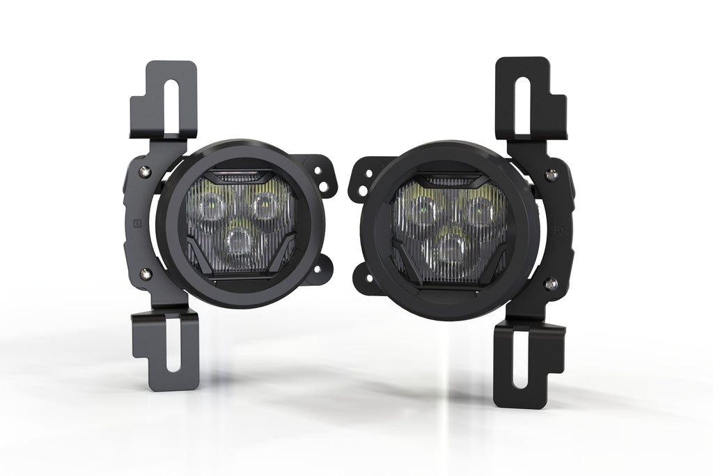 SAE Compliant Fog Lights: The Morimoto 4Banger NCS SAE Wide Beam out-performs the competition while complying with the latest SAE F regulations for a street legal fog light. But what's better than producing the best and brightest beam patterns that are safe for use on public roads as a fog light? The best fog-light specific mounting brackets for your Jeep, of course. Engineered Solution: Thanks to the smaller than usual footprint of the 4Banger, we now have a powerful fog light upgrade that fits properly and looks right. Other adapter kits for more traditionally-sized LED pods stick out like a sore thumb. Not here. Morimoto engineers spent hundreds of hours hands-on in the garage during development of the 4Banger brackets alone. Repeated rounds of design, prototyping, and test fitting have spawned the most refined set of fog light brackets that a Wrangler JL or Gladiator JT owner could ask for. Easy Setup: Everything is designed to bolt-on and plug-n-play for both factory plastic and factory steel bumpers. No modifications are required to your vehicle or its wiring to install the 4Banger off-road lights in your fogs. Each kit includes all the necessary hardware and high-quality wiring adapters to connect with your factory fog light harness. Note, your vehicle must have stock fog lights. Fully Adjustable: These things are powerful, and while their wide beam pattern is perfect for use as a fog light, power is nothing without control. All brackets have +/- 6 degrees of vertical adjustability so that you can dial in the aim and ensure every ounce of intensity ends up on the road ahead, not in the eyes of oncoming traffic. Air Cooled: As if the style, the fitment, the adjustability aren't enough, we have incorporated duct work into each bracket to actively cool the LED pods. This improves lumen maintenance by eliminating heat-soak, which is common in other LED Pod fog light kits that have no ventilation for the heat sink. All Weather: The white-output version is ideal for all-around visibility. For those who desire optimal output in rain, snow, or fog --the Yellow-output version will slay in sour weather. NCS Wide Beam: Offers the same super wide beam pattern backed with LEDs from Nichia. Their superior vertical gradient control also been verified by Calcoast ITL to meet SAE F photometric standards for on-road use as a fog light, making them highly effective on the ground and glare-free for oncoming traffic. The NCS Wide beam is 14% brighter than its next closest competitor (Rigid D-Series SAE), while consuming 28% less power (15.6W vs 21.5W).