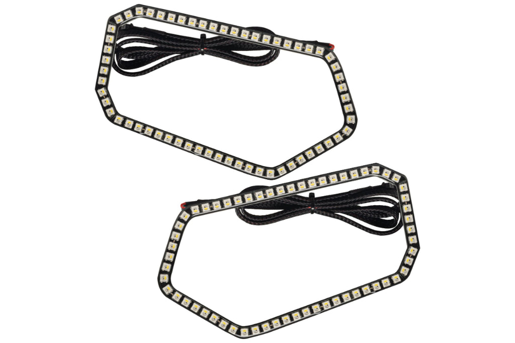 Introducing the ORACLE Lighting Dynamic ColorSHIFT RGB+W Headlight Halo Kit for the 2008-2019 Polaris RZR 570/800/900 models. The new ORACLE Lighting Dynamic ColorSHIFT Halos feature individually addressable LEDs which pack a ton of unique features. The Dynamic features allow the user to run multiple moving color patterns through the LEDs, creating a vivid eye-catching lighting effect. This complete LED Halo kit includes everything you need to install and operate the halos on your rig. These RGBW halos feature our traditional RGB ColorSHIFT technology along with an extra "White LED" which allows for truer white tones, a crisp white DRL color option and the ability to instantly switch over to DRL mode. App Control: Through the App you can easily make standard white colors as well as any static colors using the LED color wheel. What makes these DYNAMIC halos more unique is that you can also display a variety of moving patterns within the app. With over 200 different patterns there is something to fit every color scheme you can imagine! Installation: Installation is very easy thanks to the IP67 waterproof characteristics of the Halos, these LEDs are completely encapsulated in a waterproof resin which makes them completely waterproof and allows them to be installed onto the outside of the lens. This makes installation easy even for a beginner. Wiring: Wiring is now easy with the plug-and-play connectors. Simply plug the halos into the LED driver and connect to + and " to the battery. Then you just turn on the app and connect to the controller. Give your UTV the attitude you've always wanted it to have, with the new ORACLE ColorSHIFT RGB+W Headlight Halo Kit!