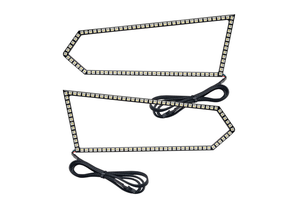 Introducing the ORACLE Lighting Dynamic ColorSHIFT RGB+W Headlight Halo Kit for the 2014-2019 Polaris Ranger 570/900/1000 models. The new ORACLE Lighting Dynamic ColorSHIFT Halos feature individually addressable LEDs which pack a ton of unique features. The Dynamic features allow the user to run multiple moving color patterns through the LEDs, creating a vivid eye-catching lighting effect. This complete LED Halo kit includes everything you need to install and operate the halos on your rig. These RGBW halos feature our traditional RGB ColorSHIFT technology along with an extra "White LED" which allows for truer white tones, a crisp white DRL color option and the ability to instantly switch over to DRL mode. App Control: Through the App you can easily make standard white colors as well as any static colors using the LED color wheel. What makes these DYNAMIC halos more unique is that you can also display a variety of moving patterns within the app. With over 200 different patterns there is something to fit every color scheme you can imagine! Installation: Installation is very easy thanks to the IP67 waterproof characteristics of the Halos, these LEDs are completely encapsulated in a waterproof resin which makes them completely waterproof and allows them to be installed onto the outside of the lens. This makes installation easy even for a beginner. Wiring: Wiring is now easy with the plug-and-play connectors. Simply plug the halos into the LED driver and connect to + and " to the battery. Then you just turn on the app and connect to the controller. Give your Side-by-Side the attitude you've always wanted it to have, with the new ORACLE ColorSHIFT RGB+W Headlight Halo Kit!