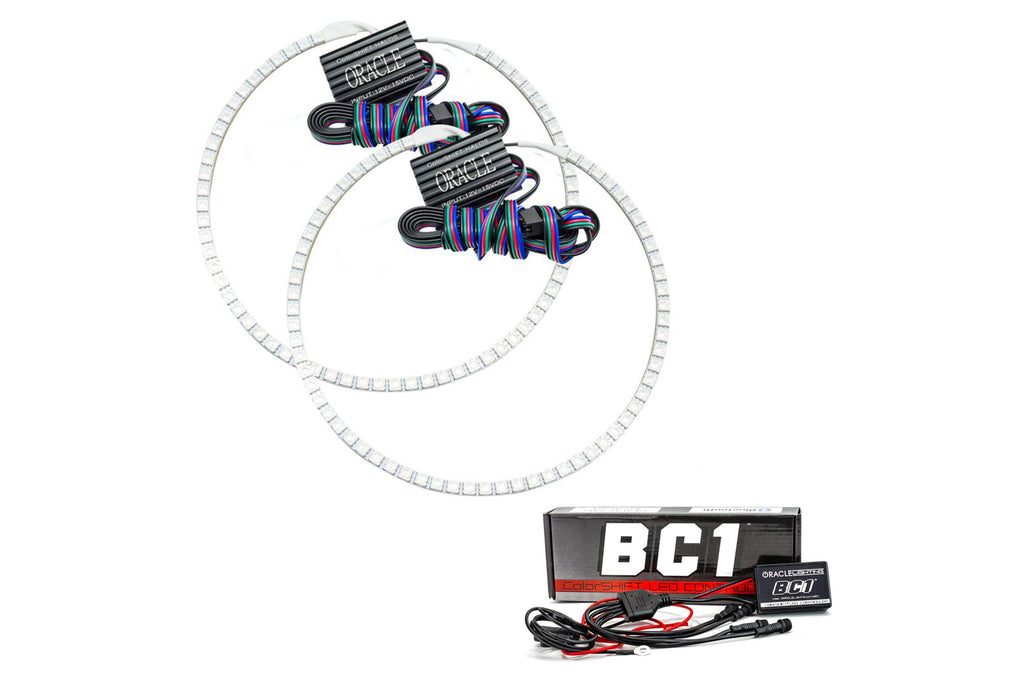 The ColorSHIFT Halo Kit can produce any color including whites from 3000K-15000K with the push of a button. This allows the user to dial-in the exact color rings that they desire. These 3-Chip 5050 SMD rings are BRIGHT, and for some they may be too bright, that is why (for the first time) the user has full control over the ring brightness. ORACLE SMD or "Surface Mount Diode" Halos utilize an advanced type of LED chip that can produce brilliant light output while only consuming a small amount of power. The SMD chips are installed onto a CAD designed 6-layer PCB (Printed Circuit Board) which is very sturdy and will not break if pressured. The PCB can easily be mounted to a headlight housing using the pre-installed 3M adhesive tape backing. The new BC1 ColorSHIFT controller is a robust and rugged Bluetooth option that is easy to install and a low price. Perfect for adding ORACLE ColorSHIFT products to your vehicle, simply connect power and ground then connect your smartphone through the free app to control. The controller features 4 outputs with waterproof connections for easy wiring to your ColorSHIFT lighting products. Through the app you can turn your lights on and off, select from millions of color variations, control patterns, brightness, strobe function, and even control the lights with music