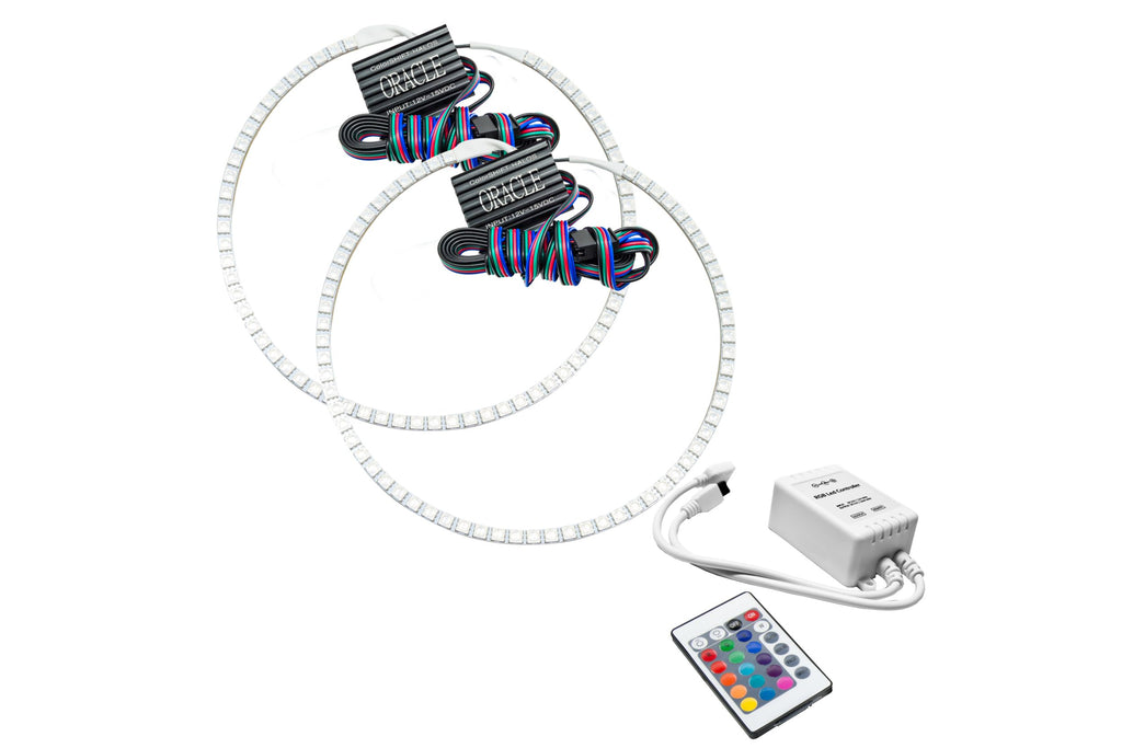The ColorSHIFT Halo Kit can produce any color including whites from 3000K-15000K with the push of a button. This allows the user to dial-in the exact color rings that they desire. These 3-Chip 5050 SMD rings are BRIGHT, and for some they may be too bright, that is why (for the first time) the user has full control over the ring brightness. ORACLE SMD or "Surface Mount Diode" Halos utilize an advanced type of LED chip that can produce brilliant light output while only consuming a small amount of power. The SMD chips are installed onto a CAD designed 6-layer PCB (Printed Circuit Board) which is very sturdy and will not break if pressured. The PCB can easily be mounted to a headlight housing using the pre-installed 3M adhesive tape backing. ColorSHIFT Halo Kits include the following: ORACLE ColorSHIFT SMD Halos, LED Drivers, Optional ORACLE ColorSHIFT Controller Module, Optional ORACLE ColorSHIFT Wireless Remote, and DIY Installation Instruction Guide.