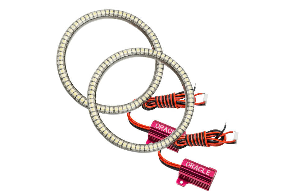 This new ORACLE Halo Kit features ORACLE SMD Halos that are resin injected resulting in an IP67 waterproof rating. These new SMD Halos are installed directly to the outside of the vehicle's headlight lens making installation easy even for a novice! The halo kit is 12V powered and can be wired to a controller, switch, or parking light wiring harness. Product Specs: Now includes FREE Adhesion Promoter Part #2082-504. Direct-to-Lens Surface Mounting. Quick Connect Wiring Adapters. Wide Voltage External LED Drivers. IP67 Waterproof Rating. Genuine 3M VHB Adhesive Backing. Easy Install- No Cutting /No Baking! LIFETIME LED WARRANTY. Warranty lifetime period covers the LED and driver components. Hard part decay due to UV damage, oxidation, or environmental conditions are not covered under this stated period. Kit includes the following: ORACLE Waterproof Headlight Halo Rings. Quick Connect Wiring Adapters. Wide Voltage External LED Drivers.