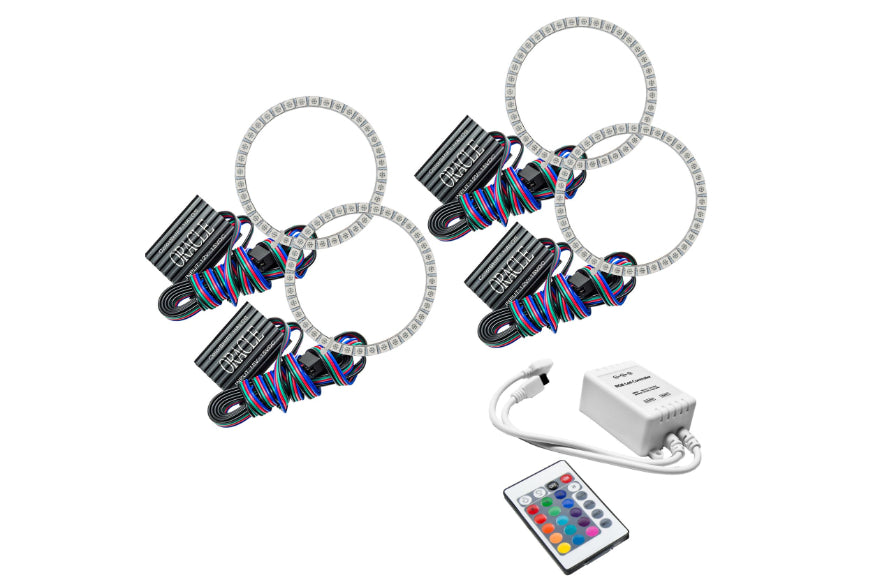 The ColorSHIFT Halo Kit can produce any color including whites from 3000K-15000K with the push of a button. This allows the user to dial-in the exact color rings that they desire. These 3-Chip 5050 SMD rings are BRIGHT, and for some they may be too bright, that is why (for the first time) the user has full control over the ring brightness. ORACLE SMD or "Surface Mount Diode" Halos utilize an advanced type of LED chip that can produce brilliant light output while only consuming a small amount of power. The SMD chips are installed onto a CAD designed 6-layer PCB (Printed Circuit Board) which is very sturdy and will not break if pressured. The PCB can easily be mounted to a headlight housing using the pre-installed 3M adhesive tape backing. ColorSHIFT Halo Kits include the following: ORACLE ColorSHIFT SMD Halos, LED Drivers, Optional ORACLE ColorSHIFT Controller Module, Optional ORACLE ColorSHIFT Wireless Remote, and DIY Installation Instruction Guide.