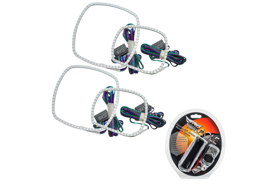 The ColorSHIFT Halo Kit can produce any color including whites from 3000K-15000K with the push of a button. This allows the user to dial-in the exact color rings that they desire. These 3-Chip 5050 SMD rings are BRIGHT, and for some they may be too bright, that is why (for the first time) the user has full control over the ring brightness. ORACLE SMD or "Surface Mount Diode" Halos utilize an advanced type of LED chip that can produce brilliant light output while only consuming a small amount of power. The SMD chips are installed onto a CAD designed 6-layer PCB (Printed Circuit Board) which is very sturdy and will not break if pressured. The PCB can easily be mounted to a headlight housing using the pre-installed 3M adhesive tape backing. ColorSHIFT Halo Kits include the following: ORACLE ColorSHIFT SMD Halos, LED Drivers, Optional ORACLE ColorSHIFT Controller Module, Optional ORACLE ColorSHIFT Wireless Remote, and DIY Installation Instruction Guide.