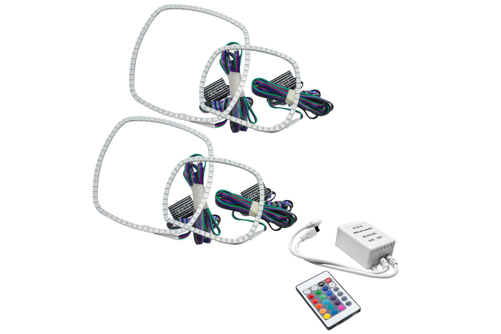 The ColorSHIFT Halo Kit can produce any color including whites from 3000K-15000K with the push of a button. This allows the user to dial-in the exact color rings that they desire. These 3-Chip 5050 SMD rings are BRIGHT, and for some they may be too bright, that is why (for the first time) the user has full control over the ring brightness. ORACLE SMD or "Surface Mount Diode" Halos utilize an advanced type of LED chip that can produce brilliant light output while only consuming a small amount of power. The SMD chips are installed onto a CAD designed 6-layer PCB (Printed Circuit Board) which is very sturdy and will not break if pressured. The PCB can easily be mounted to a headlight housing using the pre-installed 3M adhesive tape backing. ColorSHIFT Halo Kits include the following: ORACLE ColorSHIFT SMD Halos, LED Drivers, Optional ORACLE ColorSHIFT Controller Module, Optional ORACLE ColorSHIFT Wireless Remote, and DIY Installation Instruction Guide.