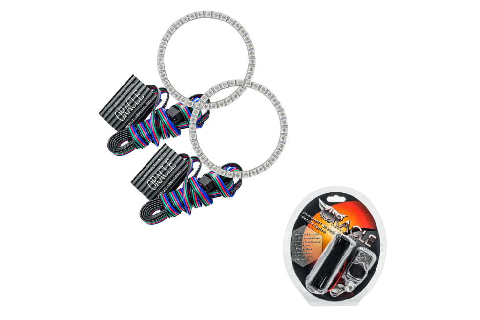 The ColorSHIFT Halo Kit can produce any color including whites from 3000K-15000K with the push of a button. This allows the user to dial-in the exact color rings that they desire. These 3-Chip 5050 SMD rings are BRIGHT, and for some they may be too bright, that is why (for the first time) the user has full control over the ring brightness. ORACLE SMD or "Surface Mount Diode" Halos utilize an advanced type of LED chip that can produce brilliant light output while only consuming a small amount of power. The SMD chips are installed onto a CAD designed 6-layer PCB (Printed Circuit Board) which is very sturdy and will not break if pressured. The PCB can easily be mounted to a headlight housing using the pre-installed 3M adhesive tape backing. ColorSHIFT Halo Kits include the following: ORACLE ColorSHIFT SMD Halos, LED Drivers, Optional ORACLE ColorSHIFT Controller Module, Optional ORACLE ColorSHIFT Wireless Remote, and DIY Installation Instruction Guide.