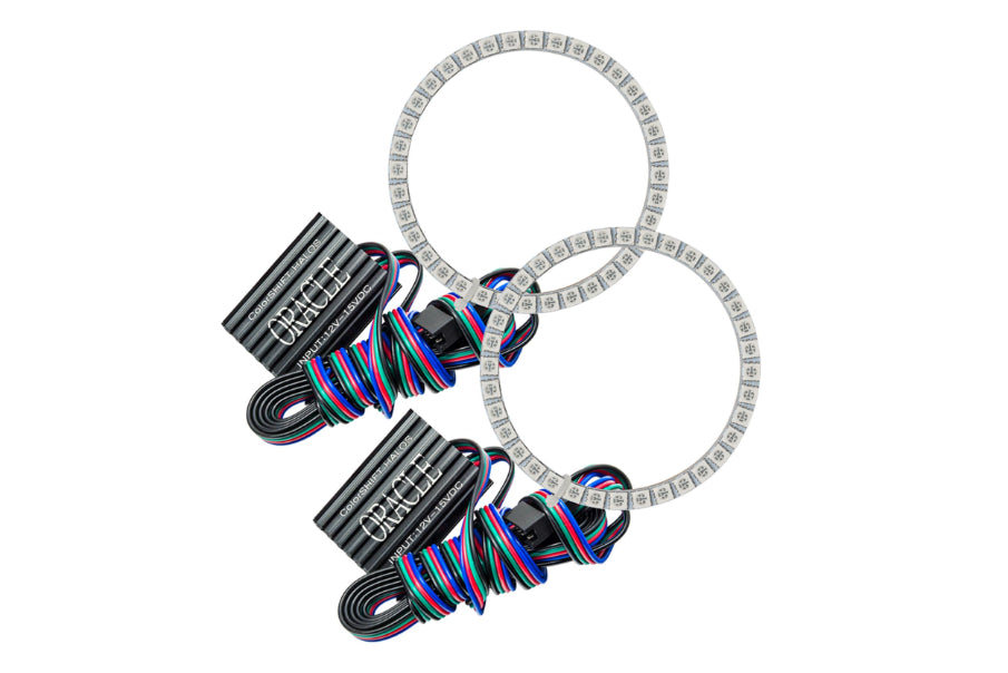 The ColorSHIFT Halo Kit can produce any color including whites from 3000K-15000K with the push of a button. This allows the user to dial-in the exact color rings that they desire. These 3-Chip 5050 SMD rings are BRIGHT, and for some they may be too bright, that is why (for the first time) the user has full control over the ring brightness. ORACLE SMD or "Surface Mount Diode" Halos utilize an advanced type of LED chip that can produce brilliant light output while only consuming a small amount of power. The SMD chips are installed onto a CAD designed 6-layer PCB (Printed Circuit Board) which is very sturdy and will not break if pressured. The PCB can easily be mounted to a headlight housing using the pre-installed 3M adhesive tape backing. ColorSHIFT Halo Kits include the following: ORACLE ColorSHIFT SMD Halos, LED Drivers, Optional ORACLE ColorSHIFT Controller Module, Optional ORACLE ColorSHIFT Wireless Remote, and DIY Installation Instruction Guide.