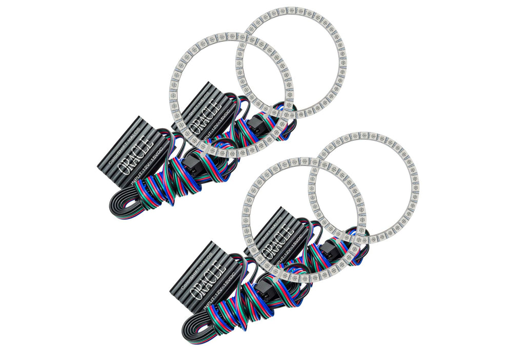 The ColorSHIFT Halo Kit can produce any color including whites from 3000K-15000K with the push of a button. This allows the user to dial-in the exact color rings that they desire. These 3-Chip 5050 SMD rings are BRIGHT, and for some they may be too bright, that is why (for the first time) the user has full control over the ring brightness. ORACLE SMD or "Surface Mount Diode" Halos utilize an advanced type of LED chip that can produce brilliant light output while only consuming a small amount of power. The SMD chips are installed onto a CAD designed 6-layer PCB (Printed Circuit Board) which is very sturdy and will not break if pressured. The PCB can easily be mounted to a headlight housing using the pre-installed 3M adhesive tape backing. ColorSHIFT Halo Kits include the following: ORACLE ColorSHIFT SMD Halos, LED Drivers, Optional ORACLE ColorSHIFT Controller Module, Optional ORACLE ColorSHIFT Wireless Remote, and DIY Installation Instruction Guide.
