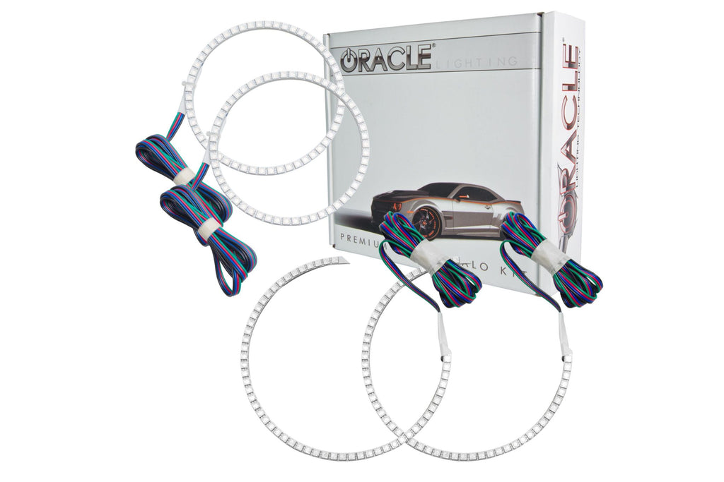 The ColorSHIFT Halo Kit can produce any color including whites from 3000K-15000K with the push of a button. This allows the user to dial-in the exact color rings that they desire. These 3-Chip 5050 SMD rings are BRIGHT, and for some they may be too bright, that is why (for the first time) the user has full control over the ring brightness. ORACLE SMD or "Surface Mount Diode" Halos utilize an advanced type of LED chip that can produce brilliant light output while only consuming a small amount of power. The SMD chips are installed onto a CAD designed 6-layer PCB (Printed Circuit Board) which is very sturdy and will not break if pressured. The PCB can easily be mounted to a headlight housing using the pre-installed 3M adhesive tape backing. ColorSHIFT Halo Kits include the following: ORACLE ColorSHIFT SMD Halos, LED Drivers, Optional ORACLE ColorSHIFT Controller Module, Optional ORACLE ColorSHIFT Wireless Remote, and DIY Installation Instruction Guide.