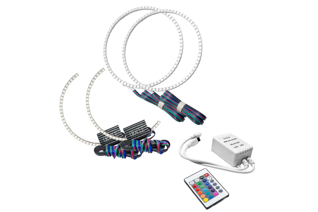 The ColorSHIFT Halo Kit can produce any color including whites from 3000K-15000K with the push of a button. This allows the user to dial-in the exact color rings that they desire. These 3-Chip 5050 SMD rings are BRIGHT, and for some they may be too bright, that is why (for the first time) the user has full control over the ring brightness. ORACLE SMD or "Surface Mount Diode" Halos utilize an advanced type of LED chip that can produce brilliant light output while only consuming a small amount of power. The SMD chips are installed onto a CAD designed 6-layer PCB (Printed Circuit Board) which is very sturdy and will not break if pressured. The PCB can easily be mounted to a headlight housing using the pre-installed 3M adhesive tape backing. ColorSHIFT Halo Kits include the following: ORACLE ColorSHIFT SMD Halos, LED Drivers, Optional ORACLE ColorSHIFT Controller Module, Optional ORACLE ColorSHIFT Wireless Remote, and DIY Installation Instruction Guide.