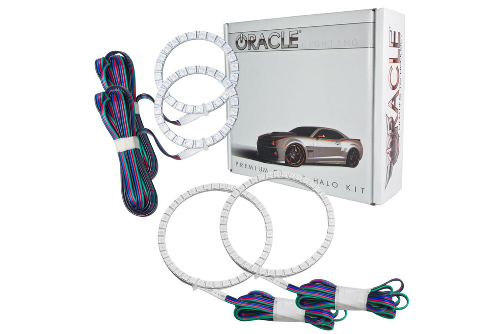 The ColorSHIFT Halo Kit can produce any color including whites from 3000K-15000K with the push of a button. This allows the user to dial-in the exact color rings that they desire. These 3-Chip 5050 SMD rings are BRIGHT, and for some they may be too bright, that is why (for the first time) the user has full control over the ring brightness. ORACLE SMD or "Surface Mount Diode" Halos utilize an advanced type of LED chip that can produce brilliant light output while only consuming a small amount of power. The SMD chips are installed onto a CAD designed 6-layer PCB (Printed Circuit Board) which is very sturdy and will not break if pressured. The PCB can easily be mounted to a headlight housing using the pre-installed 3M adhesive tape backing. ColorSHIFT Halo Kits include the following: ORACLE ColorSHIFT SMD Halos, LED Drivers, Optional ORACLE ColorSHIFT Controller Module, Optional ORACLE ColorSHIFT Wireless Remote, and DIY Installation Instruction Guide.