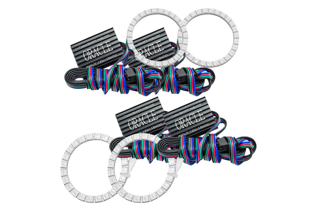 The ColorSHIFT Halo Kit can produce any color including whites from 3000K-15000K with the push of a button. This allows the user to dial-in the exact color rings that they desire. These 3-Chip 5050 SMD rings are BRIGHT, and for some they may be too bright, that is why (for the first time) the user has full control over the ring brightness. ORACLE SMD or "Surface Mount Diode" Halos utilize an advanced type of LED chip that can produce brilliant light output while only consuming a small amount of power. The SMD chips are installed onto a CAD designed 6-layer PCB (Printed Circuit Board) which is very sturdy and will not break if pressured. The PCB can easily be mounted to a headlight housing using the pre-installed 3M adhesive tape backing. ColorSHIFT Halo Kits include the following: ORACLE ColorSHIFT SMD Halos, LED Drivers, Optional ORACLE ColorSHIFT Controller Module, Optional ORACLE ColorSHIFT Wireless Remote, and DIY Installation Instruction Guide.