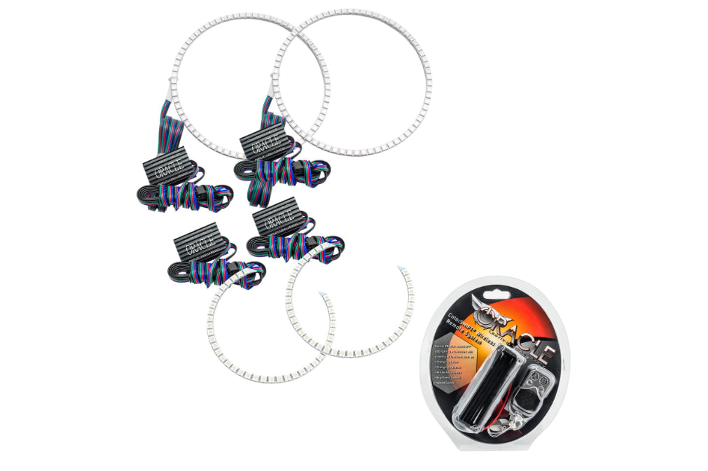 The ColorSHIFT Halo Kit can produce any color including whites from 3000K-15000K with the push of a button. This allows the user to dial-in the exact color rings that they desire. These 3-Chip 5050 SMD rings are BRIGHT, and for some they may be too bright, that is why (for the first time) the user has full control over the ring brightness. ORACLE SMD or "Surface Mount Diode" Halos utilize an advanced type of LED chip that can produce brilliant light output while only consuming a small amount of power. The SMD chips are installed onto a CAD designed 6-layer PCB (Printed Circuit Board) which is very sturdy and will not break if pressured. The PCB can easily be mounted to a headlight housing using the pre-installed 3M adhesive tape backing. ColorSHIFT Halo Kits include the following: ORACLE ColorSHIFT SMD Halos, LED Drivers, Optional ORACLE ColorSHIFT Controller Module, Optional ORACLE ColorSHIFT Wireless Remote, and DIY Installation Instruction Guide.