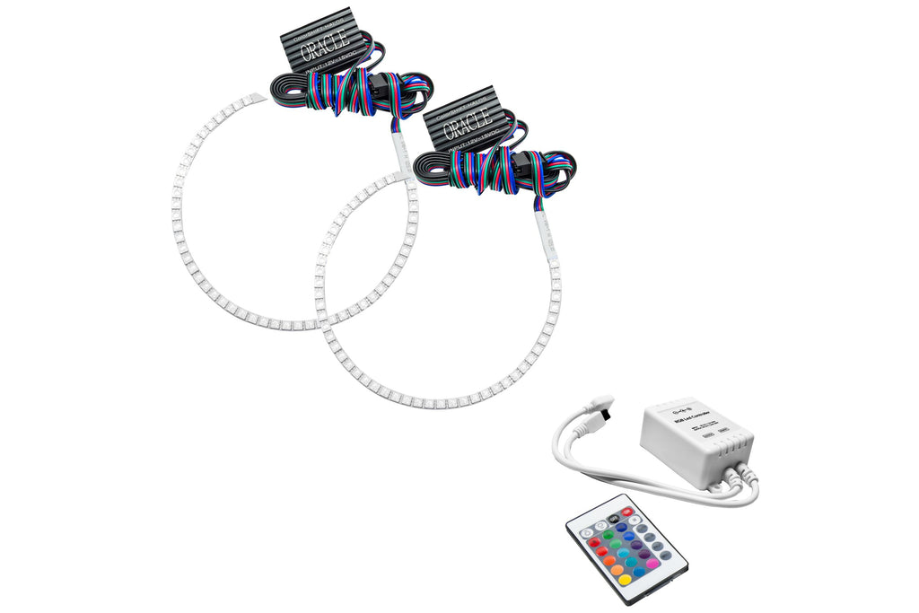 The ColorSHIFT Halo Kit can produce any color including whites from 3000K-15000K with the push of a button. This allows the user to dial-in the exact color rings that they desire. These 3-Chip 5050 SMD rings are BRIGHT, and for some they may be too bright, that is why (for the first time) the user has full control over the ring brightness. ORACLE SMD or "Surface Mount Diode" Halos utilize an advanced type of LED chip that can produce brilliant light output while only consuming a small amount of power. The SMD chips are installed onto a CAD designed 6-layer PCB (Printed Circuit Board) which is very sturdy and will not break if pressured. The PCB can easily be mounted to a headlight housing using the pre-installed 3M adhesive tape backing. ColorSHIFT Halo Kits include the following: ORACLE ColorSHIFT SMD Halos, LED Drivers, Optional ORACLE ColorSHIFT Controller Module, Optional ORACLE ColorSHIFT Wireless Remote, and DIY Installation Instruction Guide.