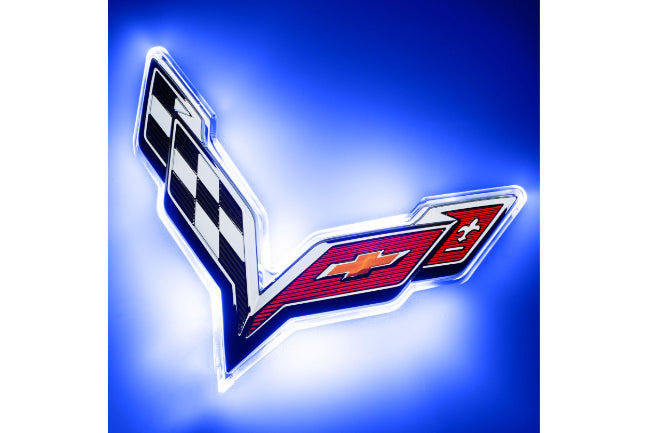 These genuine factory badges are modified to stand out from the crowd! We take the original emblems from the vehicle manufacturer and modify them to accept an acrylic plate fitted with ORACLE LEDs for a smooth visual pop. Simply remove the existing factory badge and install this in its place. Wiring is routed through existing holes in the trunk lid and ties into the parking lights and also includes pre-installed 3M adhesive backing. Add an ORACLE Dual-Intensity LED circuit and these illuminated badges can also be used as 3rd brake light. This item is built-to-order. There is a processing time of 5-7 business days to have your item built and shipped. If you wish to have your emblem professionally painted, an additional 3-4 week processing time is required. The ColorSHIFT option must be used in conjunction with one of our ColorSHIFT Controllers. (Sold Separately) Dual Intensity Option will allow your emblem to operate as a running light and an additional brake light. Dual Intensity Option will not operate with the ColorSHIFT option. Package Includes the following all assembled and ready to install! - OEM C7 Corvette Badge - Clear Acrylic Insert - ORACLE LEDs