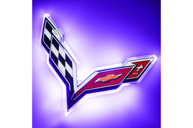 These genuine factory badges are modified to stand out from the crowd! We take the original emblems from the vehicle manufacturer and modify them to accept an acrylic plate fitted with ORACLE LEDs for a smooth visual pop. Simply remove the existing factory badge and install this in its place. Wiring is routed through existing holes in the trunk lid and ties into the parking lights and also includes pre-installed 3M adhesive backing. Add an ORACLE Dual-Intensity LED circuit and these illuminated badges can also be used as 3rd brake light. This item is built-to-order. There is a processing time of 5-7 business days to have your item built and shipped. If you wish to have your emblem professionally painted, an additional 3-4 week processing time is required. The ColorSHIFT option must be used in conjunction with one of our ColorSHIFT Controllers. (Sold Separately) Dual Intensity Option will allow your emblem to operate as a running light and an additional brake light. Dual Intensity Option will not operate with the ColorSHIFT option. Package Includes the following all assembled and ready to install! - OEM C7 Corvette Badge - Clear Acrylic Insert - ORACLE LEDs