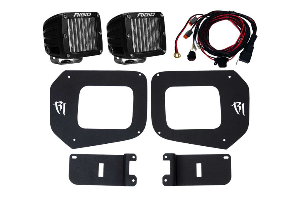 OVERVIEW: The RIGID 2016-2017 Toyota Tacoma Fog Mount Kit includes two (2) SAE D-Series Fog Lights, mounting brackets, wiring harness and installation hardware. The Fog Mounts are constructed of durable 304 stainless steel that is coated with a high quality scratch resistant powder coat finish. They mount directly into the factory fog light cavities on your vehicle and provide you with the perfect street legal SAE Compliant lighting solution.